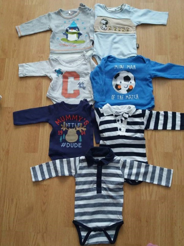 Mimo że już mam dużo ubranek dla małego, moja mama dokupiła jeszcze jedną paczkę 56-62 i powysyłała mi fotki, tutaj bodziaki