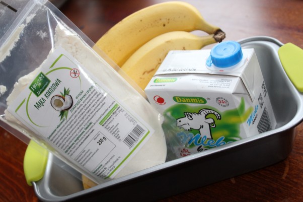 Z edycji na Zdrowie mamie i dziecku dziś razem z córcią siedzimy w domku ponieważ córa zaziębiona .... postanowiłyśmy upiec ciasto bananowe bez glutenu na mące kokosowej nasz pierwszy taki wypiek trzymajcie kciuki aby smakowało :-)