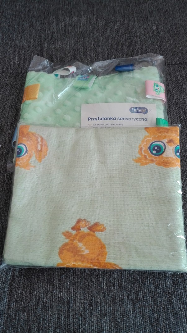 Na warsztatach dostaliśmy również pieluszke tetrowa oraz poduszkę sensoryczna.