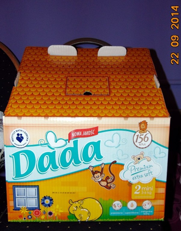 Od dzisiaj do środy promocja w Biedronce na pieluszki, taka sama ilość, tylko że zapakowana w świetny kartonowy domek o 10 zł taniej niż kupując w zwykłych paczkach. Wezmę do szpitala trochę tych pieluszek i trochę oryginalnych pampersów, bo nie wiem jak pupka Julci zareaguje na Pampersy ;)