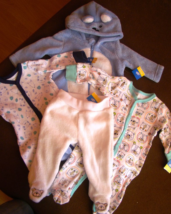 Mąż wciąż chce wierzyć że jednak będzie mieć drugiego synka i tak bez mojej wiedzy zakupił parę ciuszków dla noworodka, nie jestem zła bo ciuszki były kupione dość tanio a że chłopięce no cóż jak coś będzie mieć córkę w chłopięcych ciuszkach hi hi hi