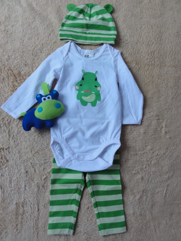 Obiecałam sobie, że nie poddam się szałowi zakupów :) Ponieważ jestem na zwolnieniu i siedzę w domu wydawało mi się, że będzie to łatwe zadanie. Jednak jak tylko udało mi się wybrać do sklepu i zobaczyłam ten komplecik nie mogłam się oprzeć i musiałam go kupić :) Nie przypadkowo jest na nim hipopotamek. Ciocia a zarazem przyszła chrzestna naszego Juniora jest wielką miłośniczką hipopotamów. Wiemy, że w pokoju naszego dziedzica właśnie ten zwierzak będzie królował ;) Obok szyta na zamówienie zawieszka na karuzelę :) Nie mogło być inaczej, pierwsza zabawka Juniora to też hipopotam :)