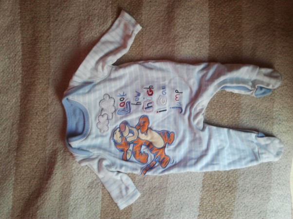 To jest mój najnowszy nabytek. Płeć dzidziusia nadal jest nam nieznana, ale kilka dni temu przechodząc koło sklepu z używaną odzieżą zakochałam się w tym Tygrysku od pierwszego spojrzenia :D :* Uznałam że jak nie będzie pasować to trudno :)