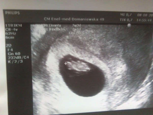 Za nami pierwsze usg i nasze szczęście z bijącym serduszkiem na monitorze. Kocham całe 1,07 cm ;-)