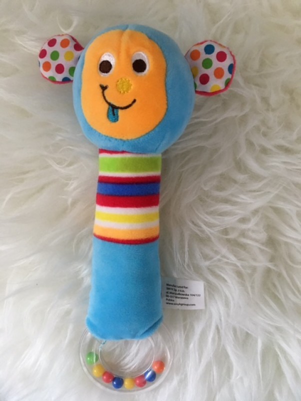 Moja teściowa przyniosła grzechotko, maskotkę, która piszczy jak się ją ścisnie.