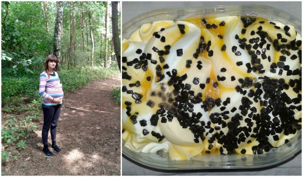 Teraz wieczór więc zaczynasz swoje tańce w brzuszku a mamusie naszła ochota na lody. Tatuś sprostał naszym zachcianką i będziemy teraz oboje się nimi delektować. Mam nadzieję, że w ten sposób uda mi się Ciebie przekupić byś oszędził moje żebra w swoich wieczornych gimnastykach :)