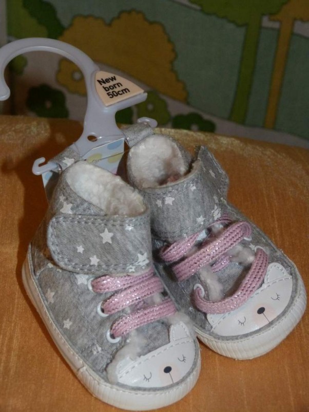 Nie wiem co nami kierowało, ale będąc w sklepie i widząc te słodkie, malusie buciki - oboje z mężem postanowiliśmy, że je kupimy! I tak, mamy w domku te śliczności z różowymi sznurówkami! A jak do tej pory, ciągle nie wiemy czy tym razem będzie to dziewczynka, czy też nie! :)