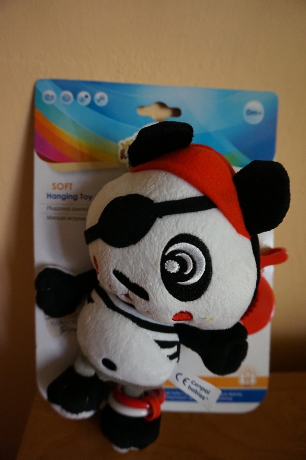 Maskotka zawiera grzechotkę, piszczałkę i elementy szeleszczące. Zabawka jest mięciutka i bardzo miła w dotyku. Myślę, że będzie idealna do pierwszych zabaw ;)