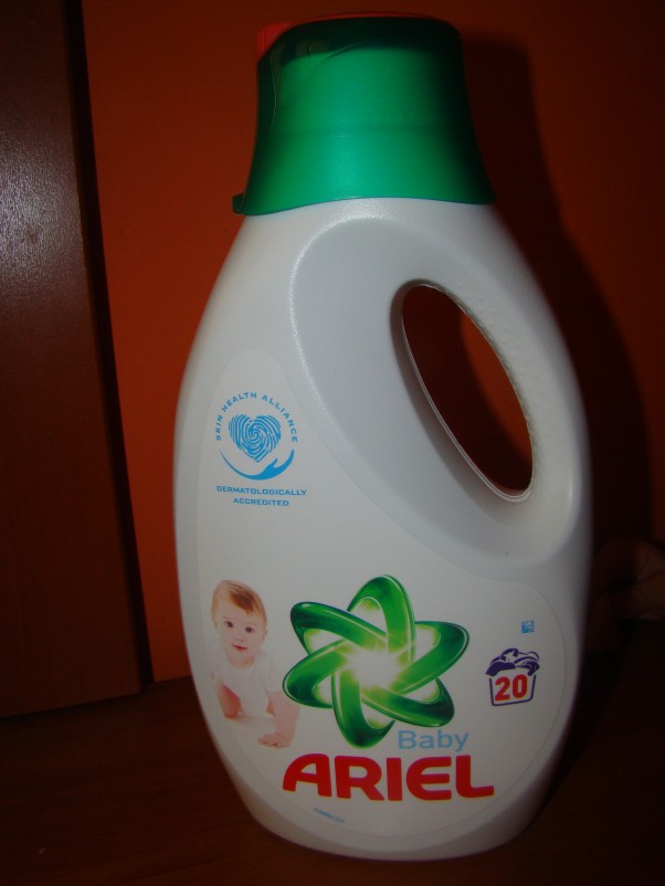 Robiłam wczoraj zakupy w dziale z chemią i zobaczyłam w promocyjnej cenie płyn do prania dla dzieci i oczywiście kupiłam ponieważ tak naprawdę pierwsze pranie ciuszków dla niemowlaczka będzie trzeba zrobić ;)