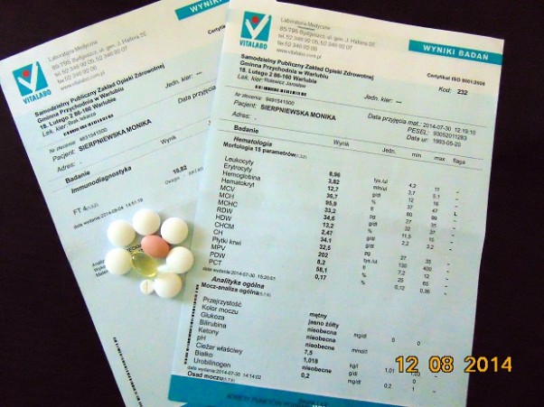 Dziś byłyśmy u pana doktora, wyniki morfologii się polepszyły dzięki lekom, ale za to wyniki tarczycy są słabsze niż ostatnio i dostałyśmy większą dawkę Letroxu :( Teraz mamusia bierze 10 tabletek dziennie, nie fajnie :/ale damy rade :) jeszcze nas deszcz zlał jak wracałyśmy i teraz daje mamusi tyyyle kopniaków :P