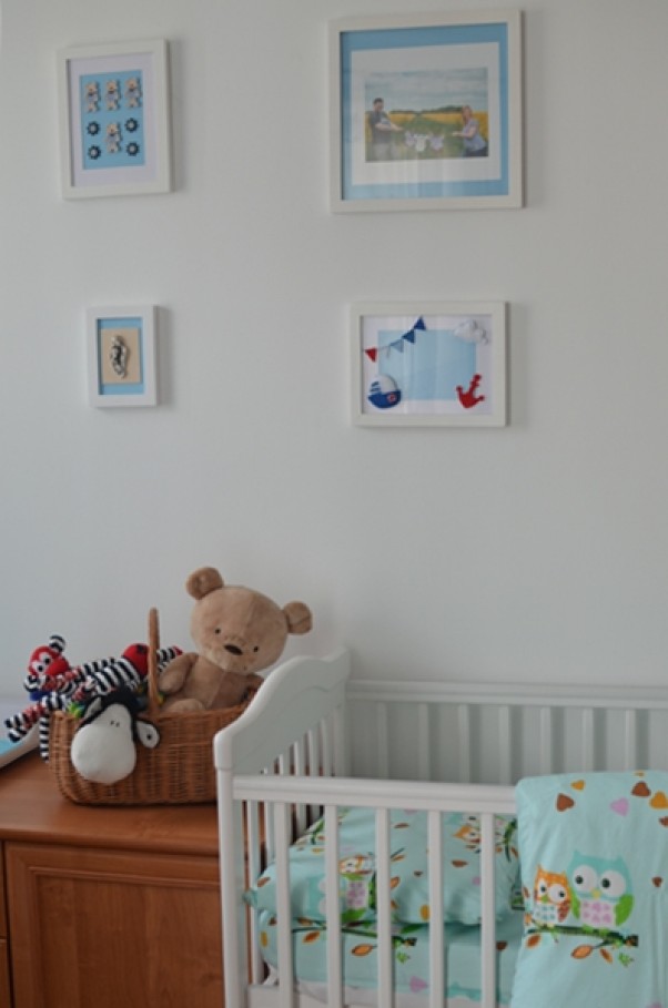 Oto pokoik przygotowany na narodziny naszego synka, jest łóżeczko, pościel w sówki, zdjęcia z naszej sesji z brzuszkiem, ramka na zdjęcie wykonana własnoręcznie.