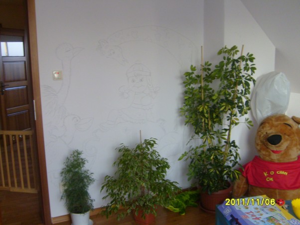 Mój ostatni pomysł, pokoik na wesoło z dodatkiem bujnej roślinności. Mój wykon dla dziewczynki, a jeśli będzie synuś na krabiku zasiądzie chłopczyk:)
