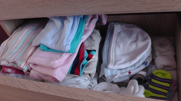 Przez ostatnie kilka dni w naszym mieście pięknie świeciło słońce i zachęcało do porządków. Dostałam razem z łóżeczkiem materacyk i sporo ubranek i musiałam wszytko posegregować. Większe ciuszki schowałam do szafy a te na sam początek w szufladach. Najmniejsze rozmiary przydadzą się na sam początek i dlatego segregacja była potrzebna. Myślę, że przed pójściem do szpitala będę musiała jeszcze raz przejrzeć dokładnie wszystko i ułożyć. Wstępnie wszystkie body, kocyki i materacyki znalazły swoje miejsce .