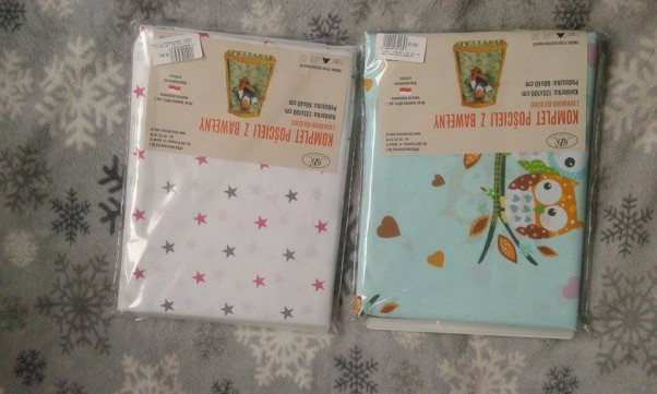 dwa komplety pościeli udało mi się ostatnio upolować. W hurtowni można kupić je o wiele taniej niż w sklepie. Wybrałam białą w gwiazdki i miętową w sowy:)