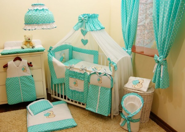 Ze względu na to że jestem obecnie w De a do Polski wracam za 2 tygodnie i zostanie mi 4 tygodnie do porodu to zamówiłam już pościel z dodatkami do łóżeczka. Turkus skradł moje serce :)<3