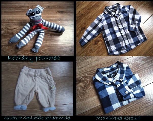 Tym razem wyszukałam dla Szymonka cieplutkie spodenki w sam raz na spacerki w chłodne dni, elegancką koszulę h&m do jeansów-idealna....
