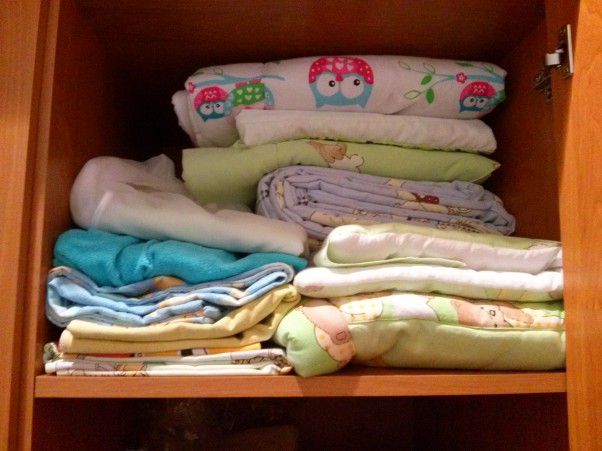... i mamy już kolejną półkę zapełnioną. Tym razem zakończyliśmy pranie i prasowanie pościeli, rożków, ochraniaczy itp. Z dnia na dzień jesteśmy coraz bliżej ukończenia przygotowań:)