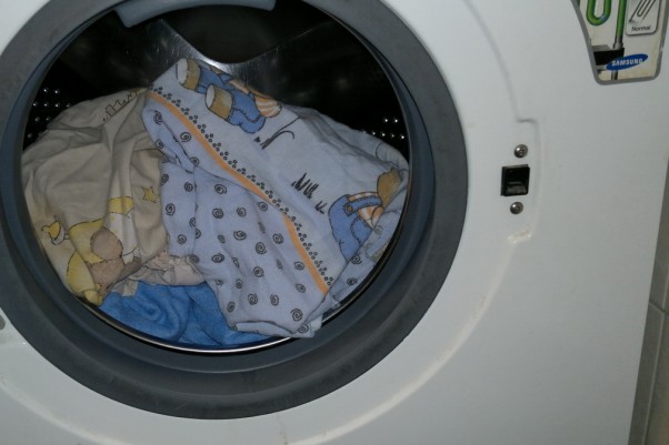 I druga tura prania.Tutaj jeszcze dorzuciłam prześcieradełko i kilka flanelowych pieluszek, które niedawno kupiłam
