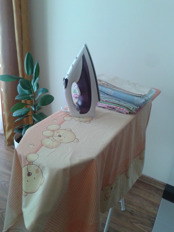 Wyprane poszewki i prześcieradełka trzeba było jeszcze wyprasować.