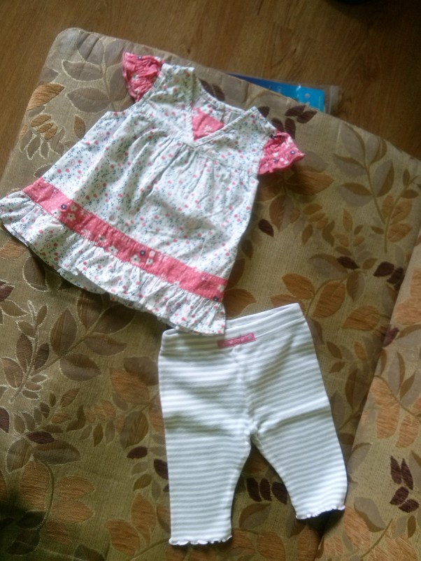 Córciu jesteś pierwszą wnuczką Babci Ali- ma już ona 6 wnuków a już niedługo będzie ich 7 a ty jesteś taką naszą małą rodzinną rodzyneczką :) już się zaczęły sypać pierwsze prezenty bo nikt nie potrafi się powstrzymać żeby nie kupić wkońcu czegoś "babskiego" ;D i tak oto dostałaś od Babci piękne legginsy i sukieneczkę :):)