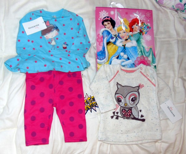 Mieliśmy dziś odwiedziny brata Pana Taty i jego narzeczonej. Przywieźli dla Lenki prezent świąteczny, sweterek i komplecik, zapakowane w ślicznej torebce. Dziękujemy ;)