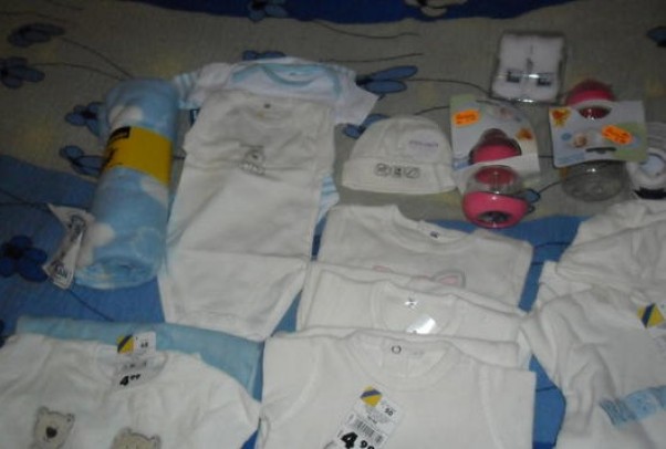 dzisiaj rano była moja mama i... dostaliśmy prezencik :) takie małe co nie co dla kolejnego wnuczka(ona też chce) albo wnuczki. Choć po kolorach ciuszków i kocyka widzę że nie tylko ja w tej rodzinie chce kolejne jajka :D