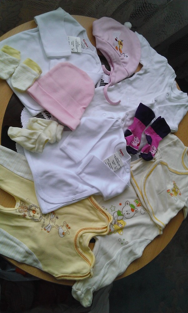 Różowa pościel w żabki i ochraniacz czekają na łóżeczko... rozpakowaliśmy nowe kaftaniki, śpioszki, pieluszki tetrowe, czapeczkę, które założymy Natalce, w dniu wyjścia ze szpitala do domku :-)