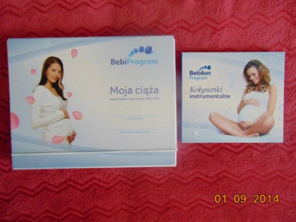 Taki prezencik dostałyśmy za zarejestrowanie się w BebiProgramie. Teczkę już wypełniłam wynikami badań i zdjęciami z usg. A płytę również już słuchamy leżąc przy laptopie, chyba się Julci podoba bo taka spokojna jest ;)