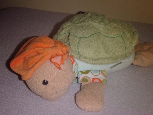 Mój synek podarował dzisiaj siostrzyczce swojego ukochanego żółwika z bijącym serduszkiem :) Żółwik już wyprany czeka na nową właścicielkę :)