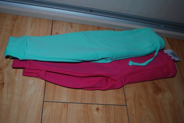 Dwie pary ślicznych dresowych spodni , choć dopiero są na ok 1-1.5r to spokojnie bede czekać w szafie. Mam taka pułke z ubraniami , które sa większe. Tam układam sobie rozmiarami. Dobra sprawa takie ubrania na zapas