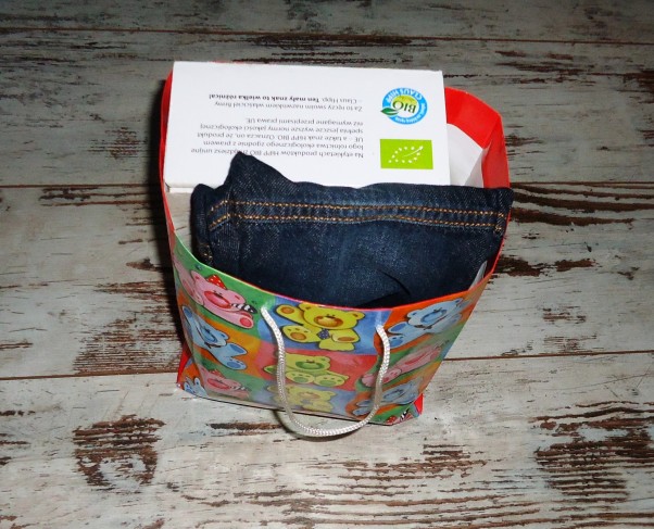 znajomi wyjeżdżali na stałe za granice. przed wyjazdem odwiedzili nas i zostawili prezent powitalny. pudełeczko niespodziankę i ogrodniczki dżinsowe. Paula trzyma w torebce prezentowej bo rozmiar jak na pół roku. Poczeka.