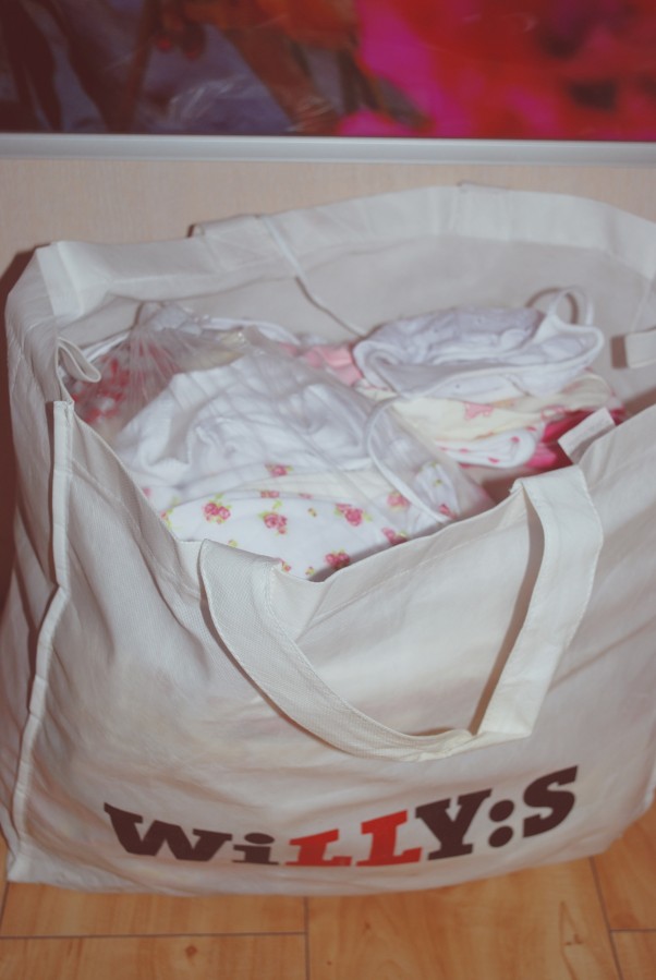 Niedawno odwiedziła nas kuzynka męża i przyniosła torbę ubranek dla małej po swoich córkach. Na pewno się przydadzą.