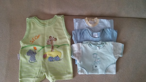 Dzisiaj wpadła do nas ciocia z prezentem dla fasolki. Przyniosła kilka małych, uroczyć ubranek po swoim dziecku. I tym sposobem nasza mała kolekcja powiększyła się o kolejne sztuki.