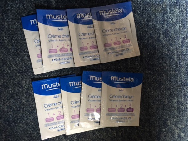 Kuzynka dała nam próbki kremów Mustela do pielęgnacji przy przewijaniu, ponieważ już nie używa. A nam się przydadzą, bo słyszałam, że niektore kremy uczulają.