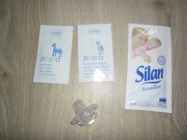 Takie gratisy dostałam od położnej. Najbardziej cieszę się ze smoczka ponieważ dzieci nie zawsze lubią pierwszy lepszy dany im smoczek, tak więc może będę musiała kupić kilka "na spróbowanie" i jeden "do testów" już mam :-)