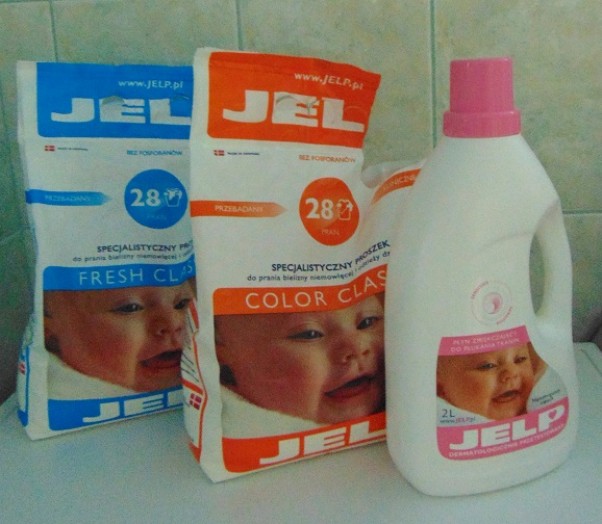 Długo się zastanawiałam jaki proszek kupić do prania Julci ubranek, doradzałam się innych mam, podpytałam tu i tam, poczytałam w necie, porównałam skład i wybrałam Jelp'a. Mam nadzieję że nie będzie źle działał na skórę Julki. Spróbujemy- zobaczymy.