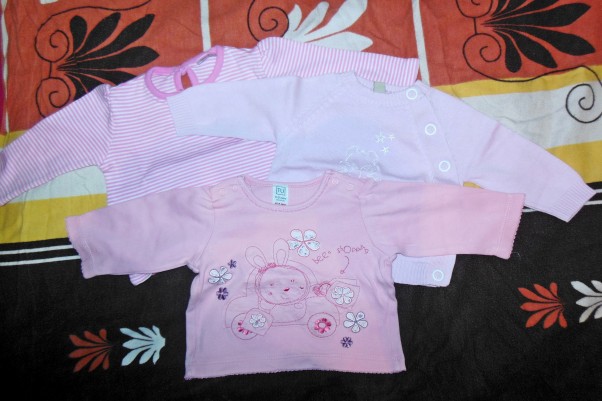 Wczoraj przyszła jeszcze jedna mała paczuszka dla malutkiej z 3 bluzeczkami. 3 ślicznie różowe bluzeczki dla małej księżniczki. Jedna jest bardzo wygodna do zakładania więc pewnie będzie w Niej bardzo często leżakowała ;) Będzie mała modeleczka i mała strojnisia ;)