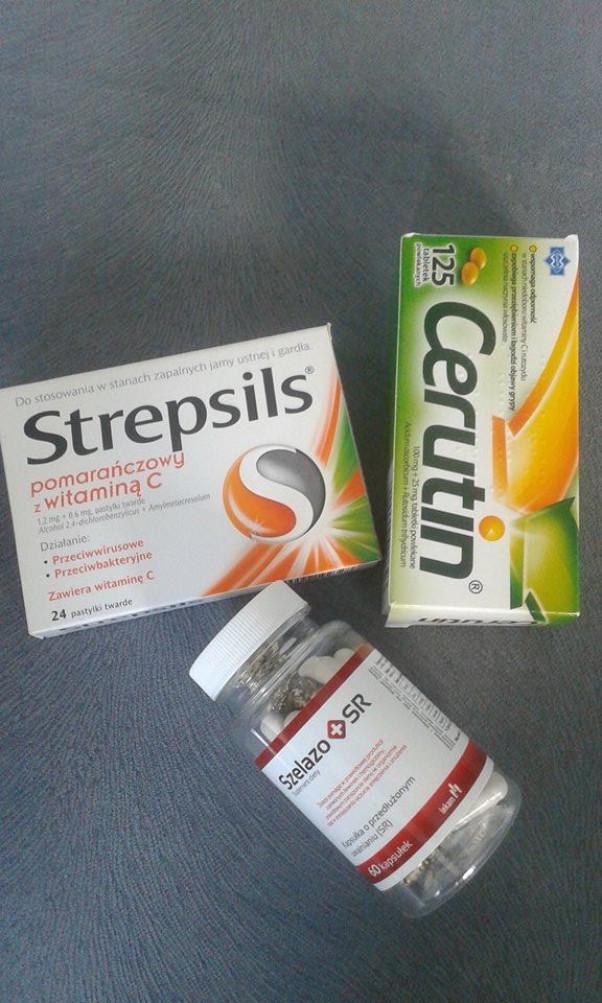 No i mamuśkę dopadło przeziębienie. Na szczęście nic groźnego ,ale gardło boli:( Mężuś był w aptece i dba o żonkę. Piję także dużo mleka z miodem, mam nadzieję że max kilka dni będzie mnie trzymać.