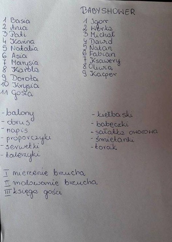 Przygotowania d Babyshower