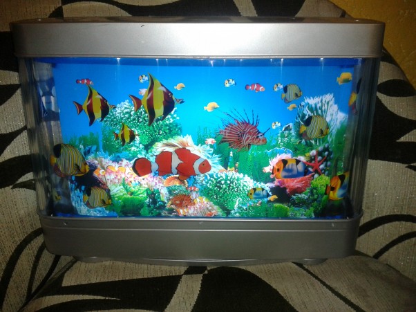 Odwiedził nas dzisiaj męża przyjaciel, który mieszka za granicą, ale przyjechał do Polski na majówkę i obdarował naszego synka, który jest jeszcze w brzuszku, piękną lampką nocną. Wcale się nie zdziwiłam jak zobaczyłam, że ta lampka to "świecące akwarium " Męża przyjaciel ma duże akwarium i wciąż dokupuje nowe rybki to jego passa czy też hobby po prostu to kocha. I stąd pomysł na właśnie taki prezent dla naszego maluszka.