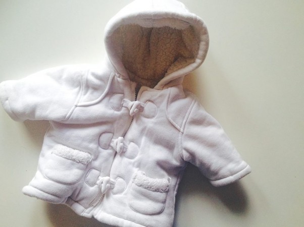Moja przyjaciółka to rasowa lumpeksiara ;) Buszuje w ciuchach aż się kurzy ;) Powiedziała mi na początku ciąży że jak tylko będzie na dzidziusia widziała coś fajnego w second-handach to od razu będzie brać. Do tej pory już mi parę rzeczy wyszperała a to kolejna z nich. Następny zimowy płaszczyk na Lilkę. Jest słodki. Oj będziemy się stroić ;) A, że przyjaciółka ma synka i nie może go ubierać w róż to wprost szaleje na punkcie dziewczęcych ciuszków i mówi że dzięki nam spełnia swoje marzenia o kupowaniu ślicznych dziewczęcych ubranek. Kto wie może i ja jej się kiedyś w ten sam sposób odwdzięcze.