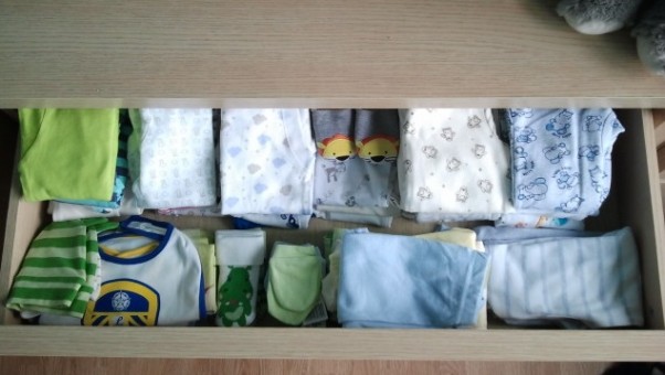 Pierwsza przymiarka ciuszków do szuflady za nami ;) Nie łatwo było się pozbyć swoich ubrań tak by zrobić miejsce na te cuda. Nie ma jednak jak połączyć przyjemne z pożytecznym. Synuś zyskał swoje miejsce a ja pozbyłam się części niepotrzebnych, dawno nienoszonych ubrań. Do tej pory, wszystkie rzeczy dla Juniora magazynowałam w kartonowym pudełku. Jak zaczęłam je układać w szufladzie to jakież było moje zdziwienie ile miejsca mogą zajmować te maleńkie ubranka ;) Jestem pewna, że wkrótce mamusia będzie musiała zwolnić kolejną szufladę bo ta maleńka garderoba rozrasta się w zastraszającym tempie :)