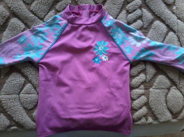 Znowu podczas zakupów nie mogłam się oprzeć i kupiłam Małej bluzeczkę "na wyrost". Może już w wakacje pojedziemy nad morze wtedy taka koszulka do wody się nam bardzo przyda. Chroni też przed promieniami uv.