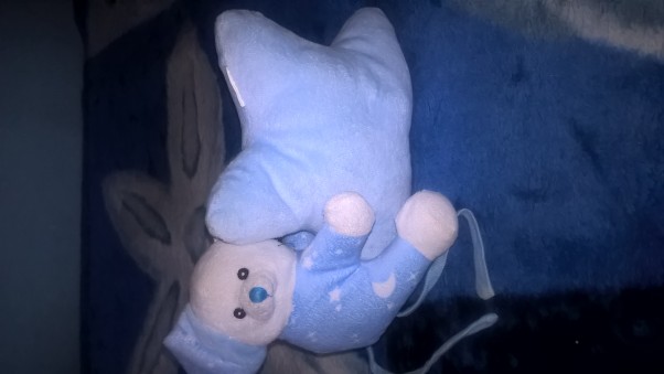 Milutki w dotyku przyczepiony miś w czepce śpiocha do tego z pozytywką to bardzo ładna ozdoba łóżeczka