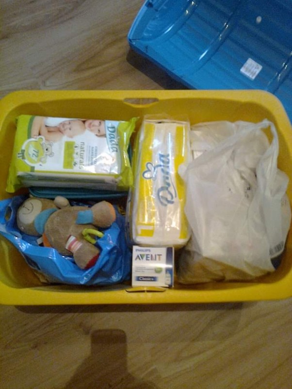 schowałam w nim najpotrzebniejsze rzeczy które nam się przydadzą a nie mamy na nie miejsca już w Twojej komodzie :) z czasem zastąpią je zabawki ale na razie stoi grzecznie i czeka na swój czas na szafie :)