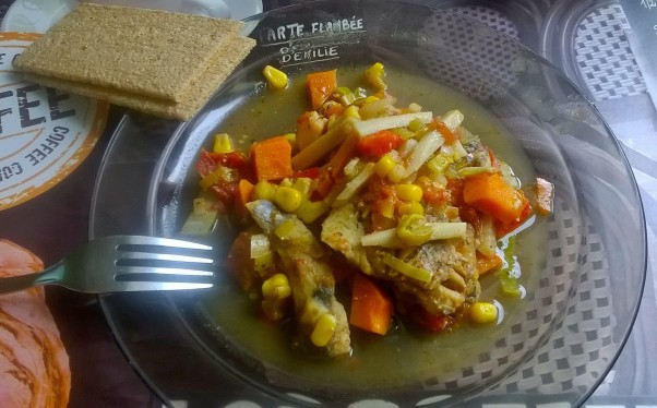 Dzis na obiad mieliśmy duszoną rybkę z warzywami. Pyszne i zdrowe, a na dodatek nie muszę się przejmować, że za dużo w ciąży przytyję :)