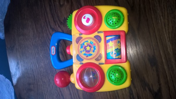 To na bank jest radyjko. Ma świecidełka melodyjki i mnóstwo pokręteł guzików i kolorowych elementów...