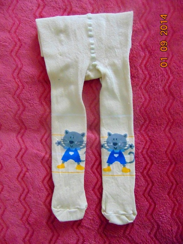 Babcia Basia dzisiaj przyszła z wujkiem Igorkiem po rozpoczęciu roku szkolnego i przynieśli prezencik dla Julki- rajstopki z kotkami :)