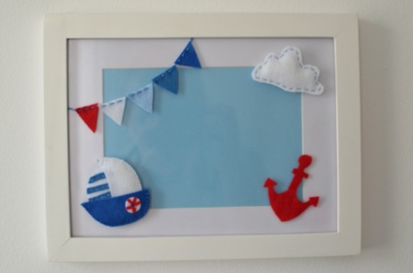 Z odrobiny kolorowego filcu, białej ramki i miłości do oczekiwanego bobasa - można samemu zrobić taką oto ramkę.