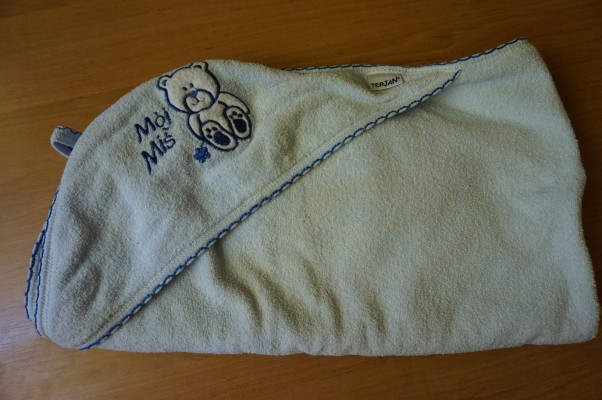 Kupiłam dla córeczki okrycie kąpielowe takie z kapturkiem, by chronić główkę dziecka. Myślę, że to bardzo praktyczne rozwiązanie. Jest wykonany z grubej tkaniny, frotte. Przed pierwszym użyciem należy ręczniczek wyprać, by lepiej wchłaniał wodę.